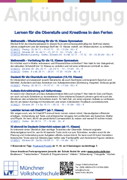 Münch. Volkshochschule: Lernunterstützung und kreative Angebote